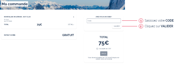 You have purchased a MONT BLANC Multipass package at a reduced rate via BuyClub, complete your purchase on this site using the code(s) received by BuyClub :
